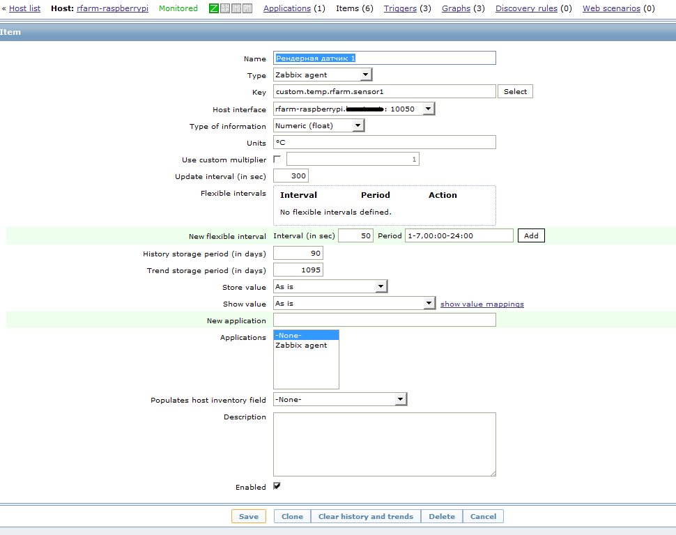 Ну и осталось создать хост и прописать для него итемы и графики в веб-интерфейсе.